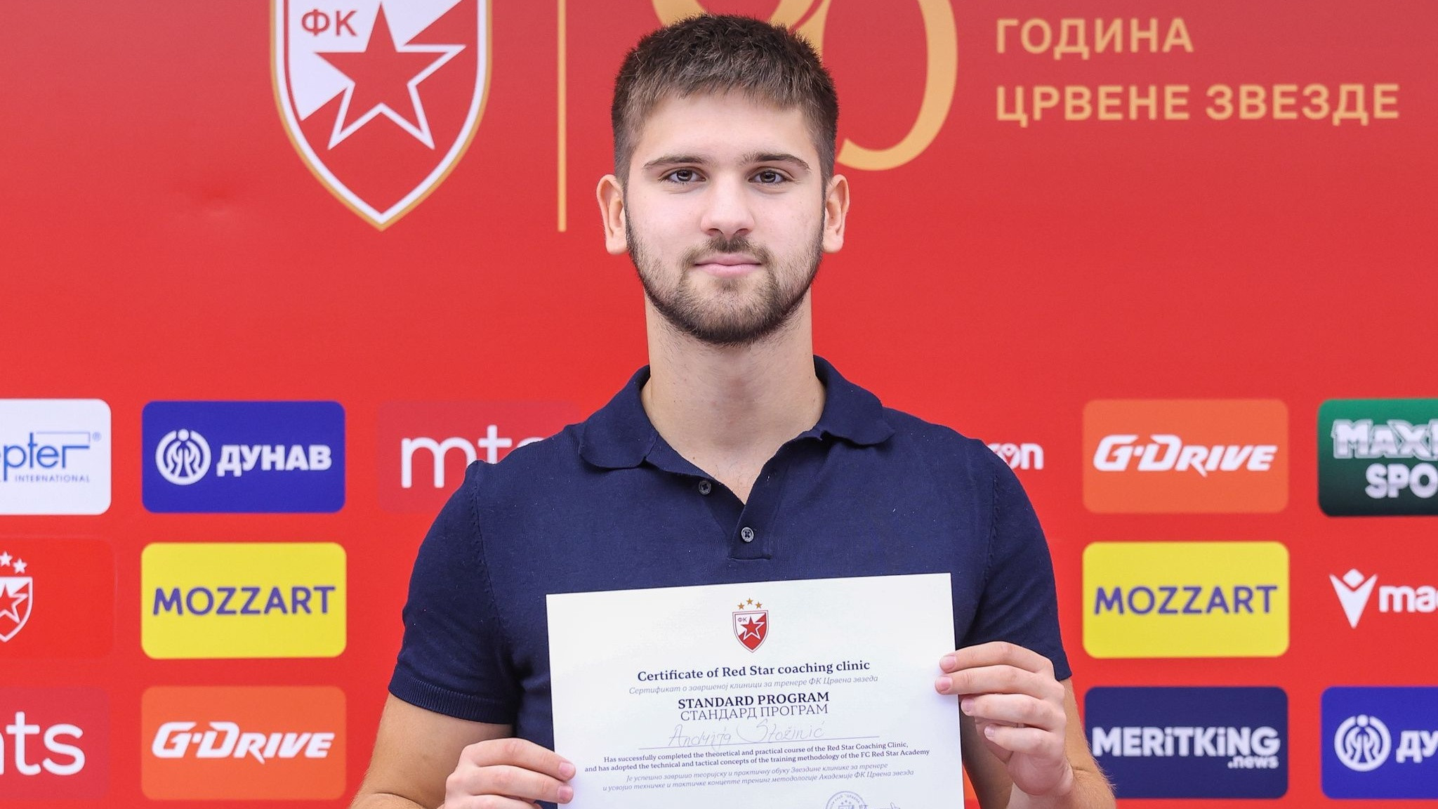 “Oduvek mi je bila želja da po završetku fudbalske karijere postanem trener. Naravno, nisam znao kada će se to desiti… Ipak, kada sam shvatio da nisam igrač za prvi tim Zvezde, odlučio sam da odem na koledž kako bih fudbalom plaćao školu. U međuvremenu sam pronašao master koji želim da upišem, a koji ne prihvata američku diplomu, tako da sam se vratio u Srbiju. Nije mi teško palo da izujem kopačke i sednem na klupu kao trener, jer se već pet godina spremam za to. Dok sam igrao u Zvezdi, stalno sam zapisivao treninge u svesku, tako da sam imao neku osnovu za rad”, počeo je Stožinić razgovor za Meridian sport i osvrnuo se na činjenicu da je dobar deo igrača koje trenira – starije od njega: